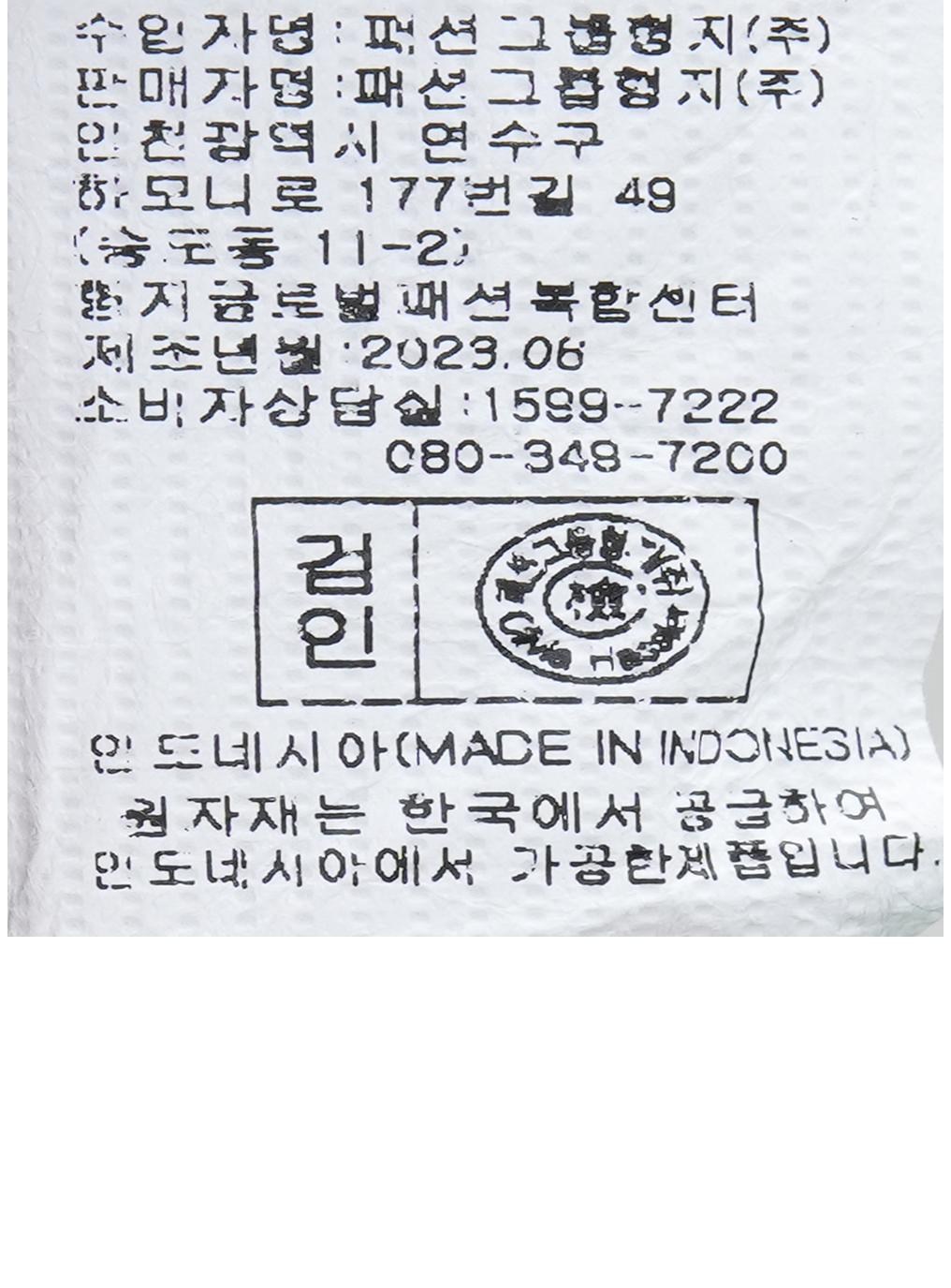 | 제조국 | 인도네시아 | 세탁방법 및 취급시 주의사항 | 컨텐츠 참조 |