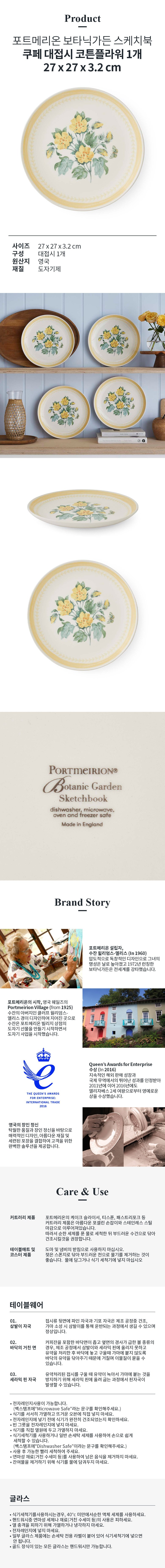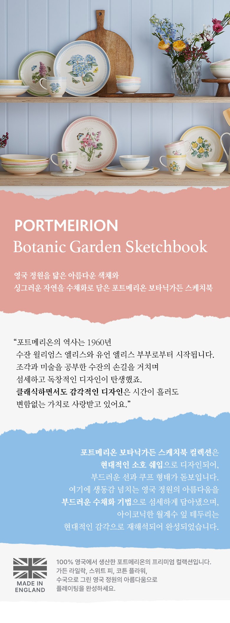 | 품명 및 모델명 | 포트메리온 보타닉가든 스케치북 쿠페 접시 27.5cm (코튼 플라워) 1p | 재질 | Earthenware(도기) |
