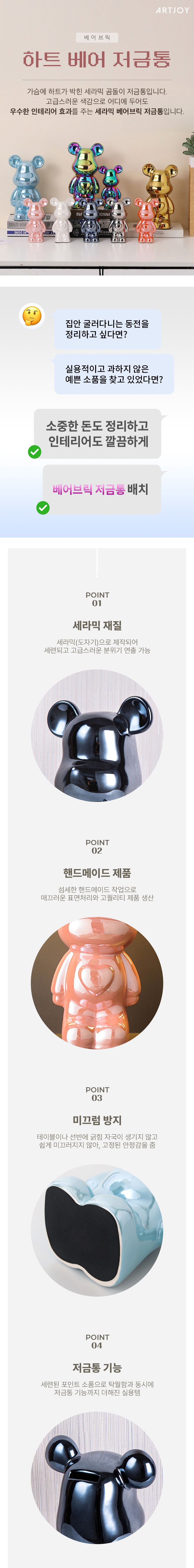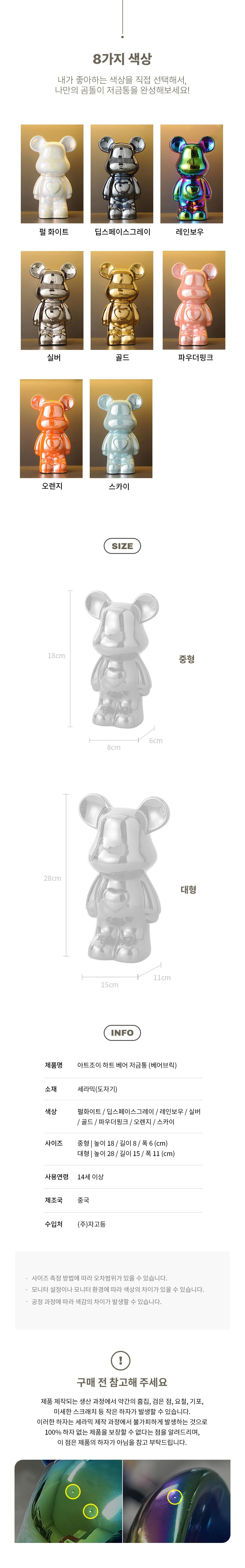 | 품명 및 모델명 | 아트조이 하트 베어 저금통 베어브릭 28cm (파우더핑크) | 인증/허가 사항 | 해당없음(14세 이상) |