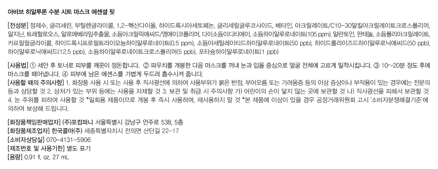 | 화장품제조업자, 화장품책임판매업자 및 맞춤형화장품판매업자 | 컨텐츠 참조 | 제조국 | 대한민국 |