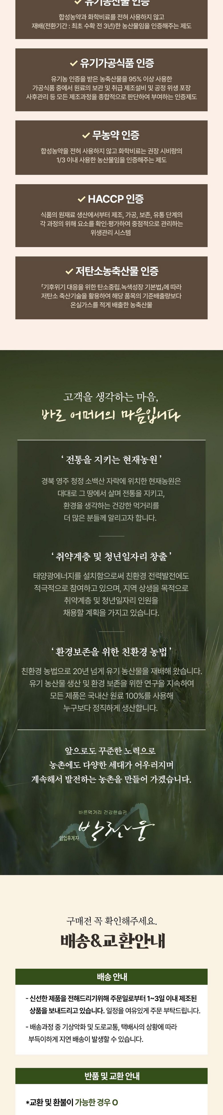 | 배송기간 | ㆍ도서산간 지역 등은 배송에 3-5일이 더 소요될 수 있습니다. - 천재지변, 물량 수급 변동 등 예외적인 사유 발생 시, 다소 지연될 수 있는 점 양해 부탁드립니다. | ||