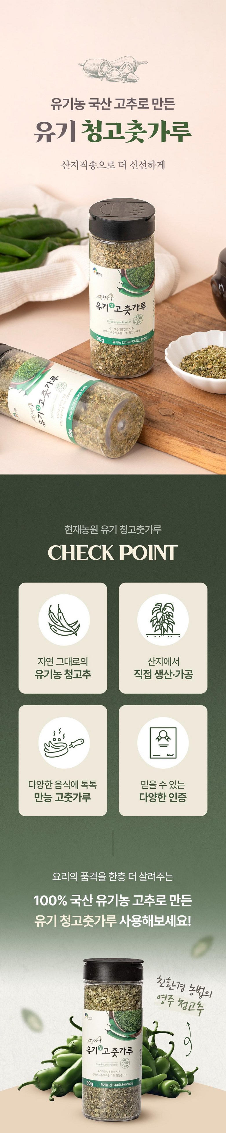 [현재농원] 100% 경북 영주산 유기농 청고춧가루 90g