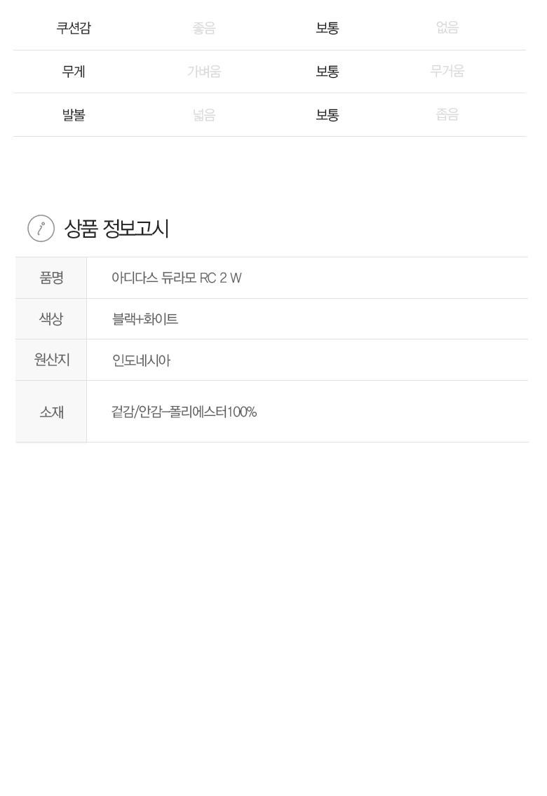 | 제품의 주소재(운동화인 경우에는 겉감,안감을 구분하여 표시) | 상품 상세페이지 참조 | 색상 | 상품 상세페이지 참조 |