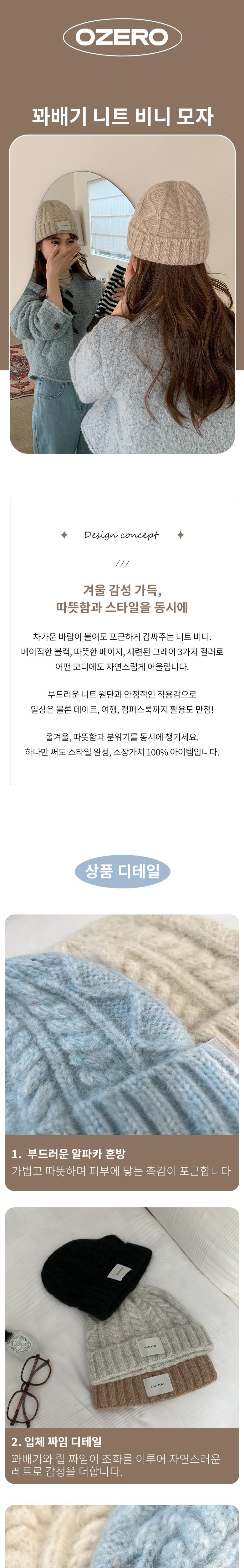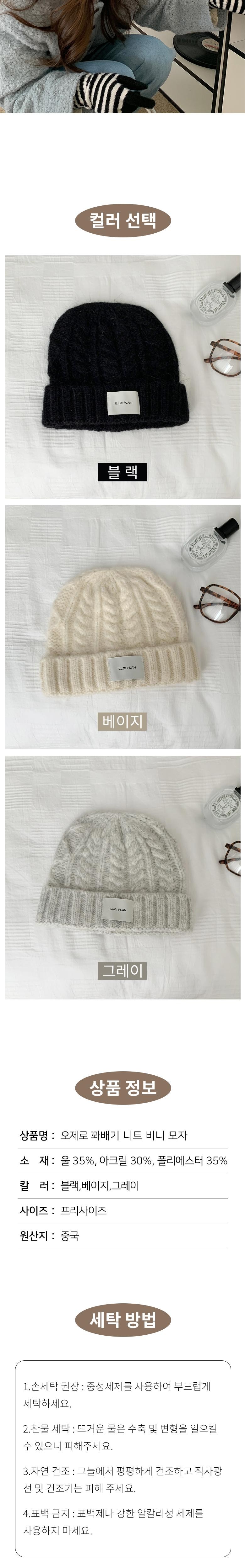 | 종류 | 오제로 꽈배기 니트 비니 모자 | 소재 | 나일론 41%, 아크릴 54%,울5% |