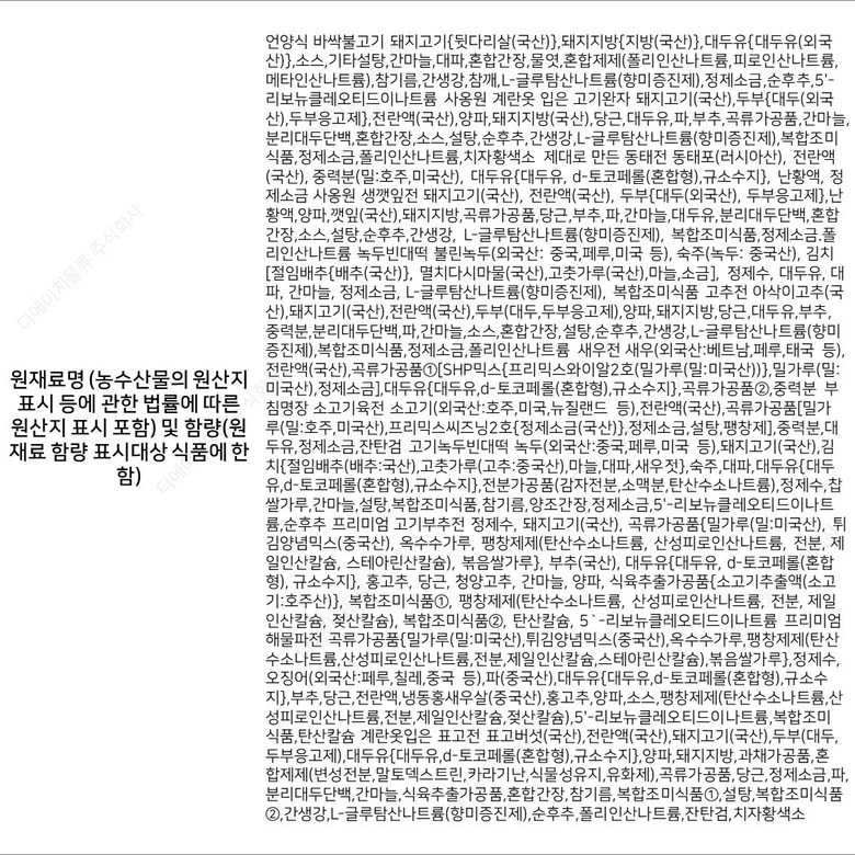 | 포장단위별 내용물의 용량(중량), 수량 | 상품 상세페이지 참조 | 원재료명 및 함량 | 상품 상세페이지 참조 |