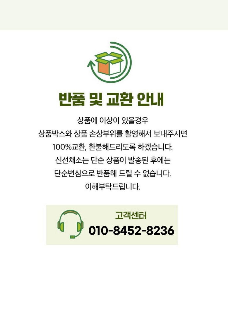 - ㆍ모니터 해상도의 차이로 인해 색상이나 이미지가 실제와 달라, 고객이 단순 변심으로 교환/반품을 무료로 요청하는 경우