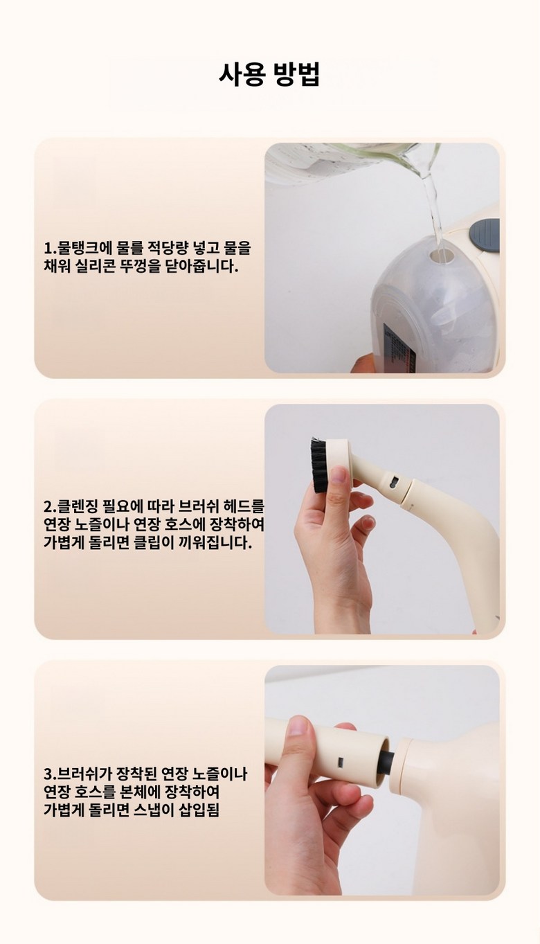 | 품명 및 모델명 | 고온 고압 스팀 청소기 | KC 인증정보 | 상품이 KC,EMC 대상인 경우, 본품 및 구성품 모두 인증번호 또는 인증번호가 없는 경우 KC 마크 여부를 기재해주세요. (대상이 아닌경우 "해당없음" 기재) |