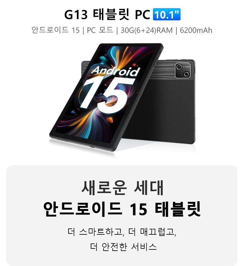 Wqplo G13 태블릿PC 10.1인치태블릿 30G+128G 안드로이드 15 6200mAh 배터리