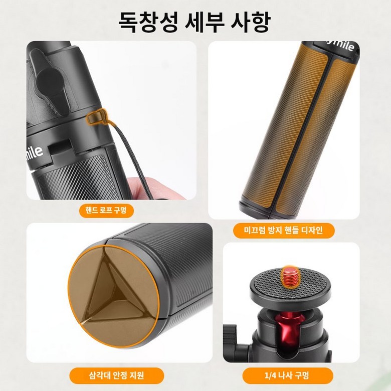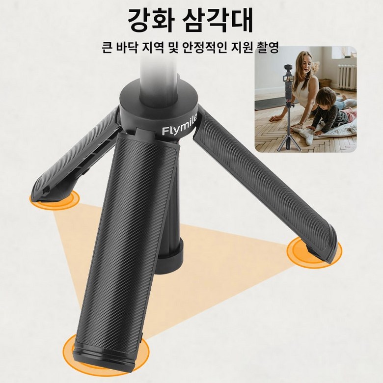 안정적인 지지력: 삼각架의 다리을 펼치면 넓은 접지面积을 바탕으로 캠라를 안정적으로 받쳐줘 흔들림 없는 선명한 영상을 촬영하는 데 도움을 줍니다.