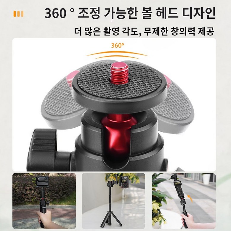 자유로운 앵글 조절: 360도로 부드럽게 회전하는 볼 헤드 디자인으로 수평, 수직, 다양한 기울기 촬영이 가능해 창의적인 구도를 쉽게 연출할 수 있습니다.