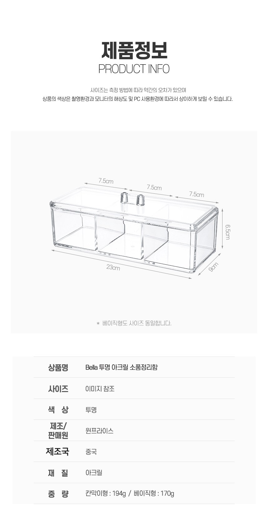 | 품명 및 모델명 | 윈프라이스 bella 아크릴 소품정리함 투명 | 인증/허가 사항 | 해당없음 |
