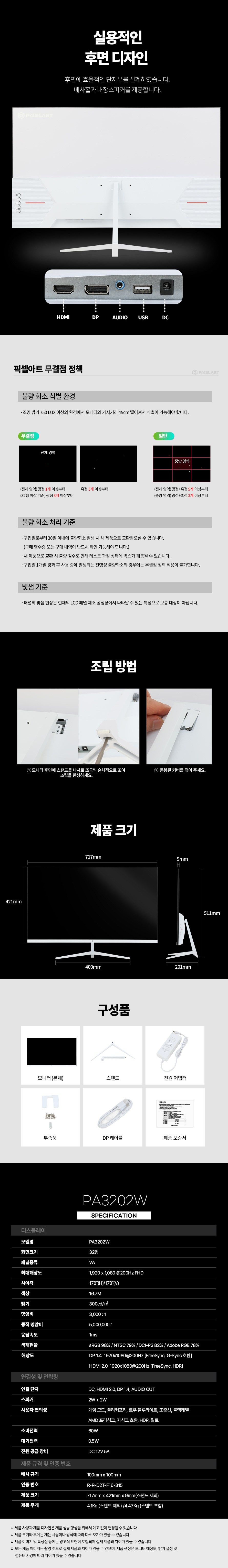 | 품명 및 모델명 | 모니터 / PA3202W | KC 인증정보 | 본품: 유/KC마크, R-R-D2T-F16-315 | 직류전원장치 : HU101279-23003A |