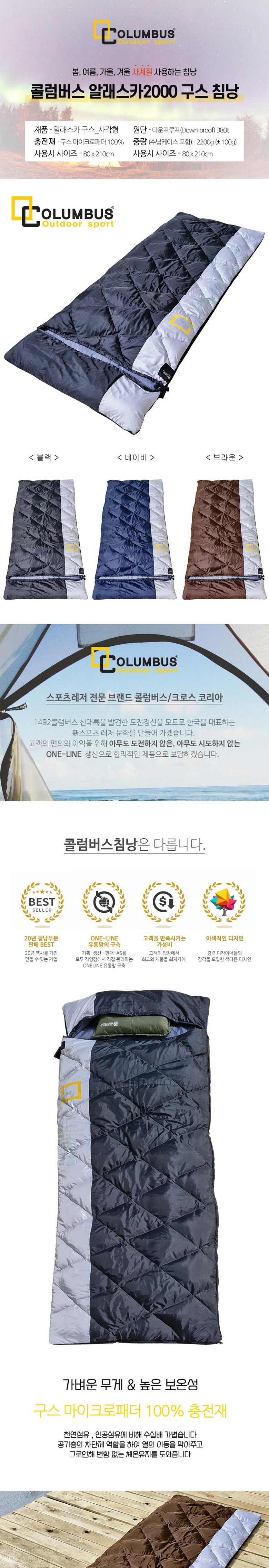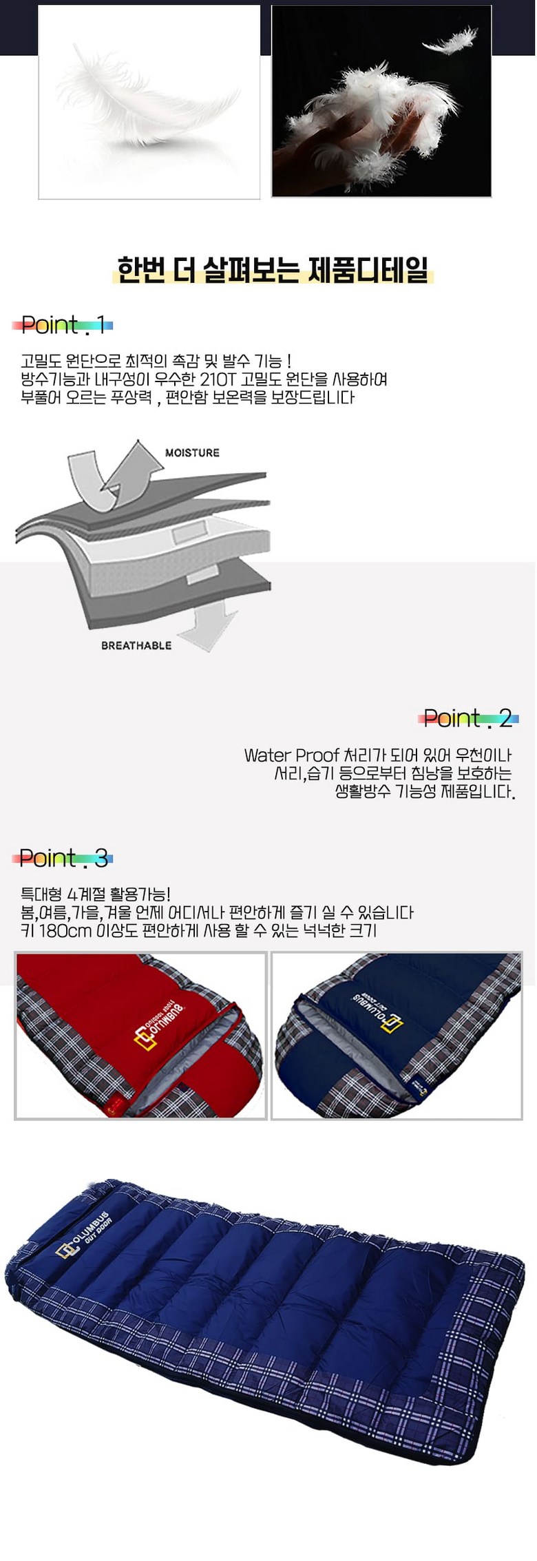 콜럼버스 사계절 거위털 맘모스3 구스 침낭 2IN1 내한온도-36 거위털1개+랜덤할로파이버 1개