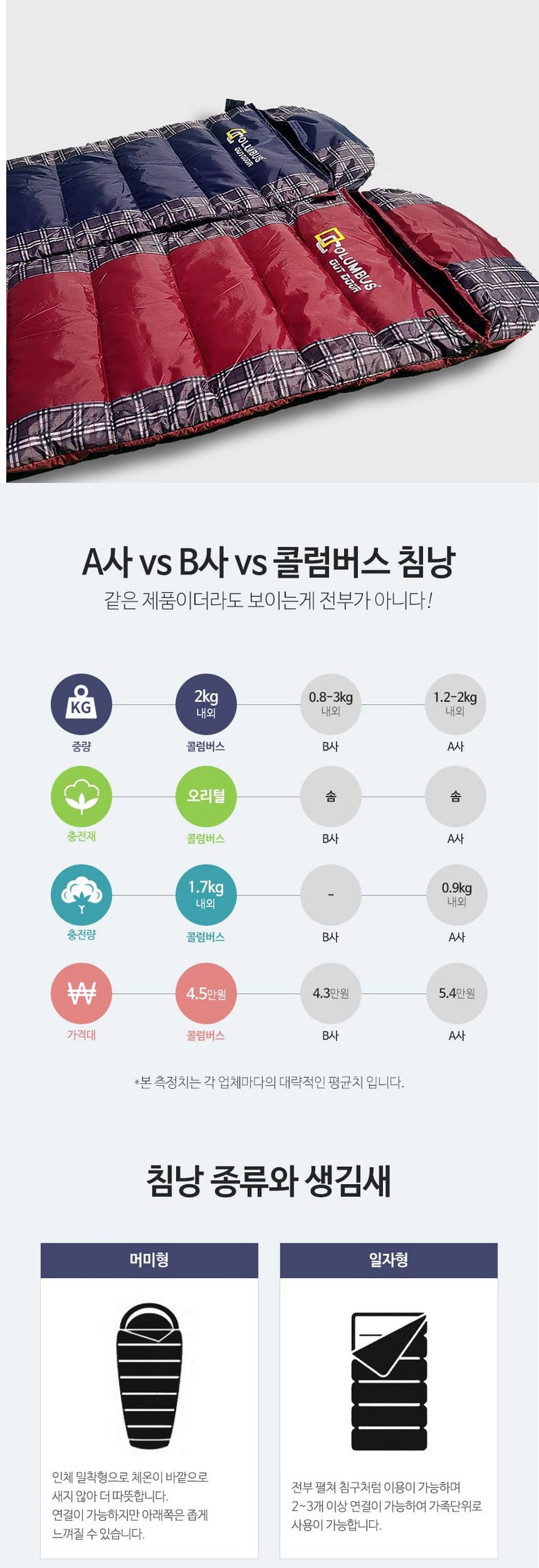 | 품명 및 모델명 | 콜럼버스 1+1 혹한기 겨울 거위털 4계정 맘모스3 구스 침낭 2IN1 내한온도-36 | 인증/허가 사항 | 상품 상세페이지 참조 |