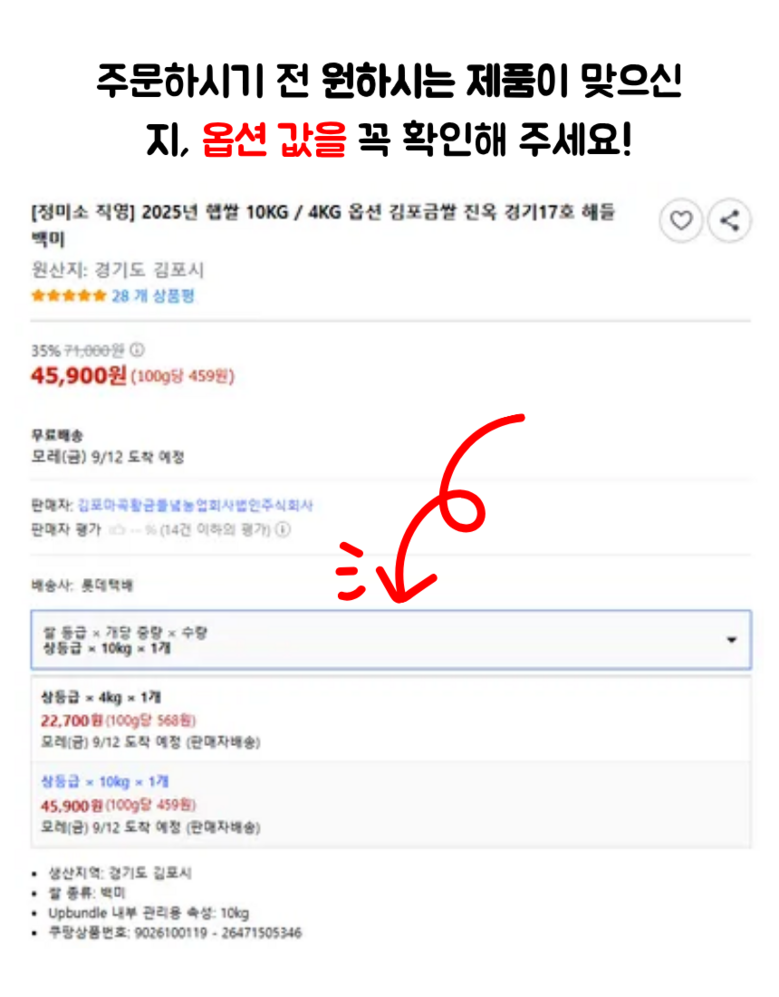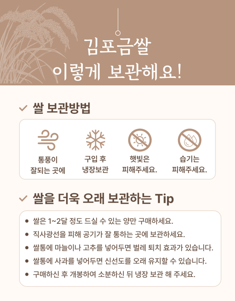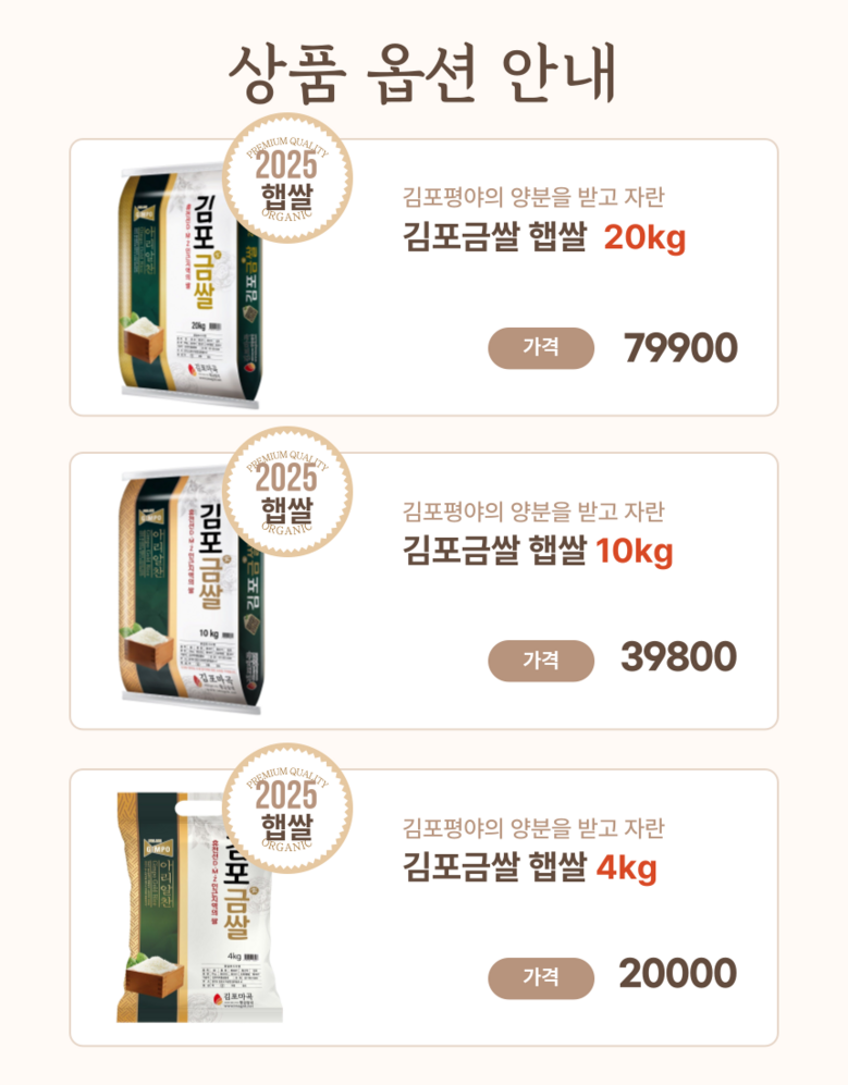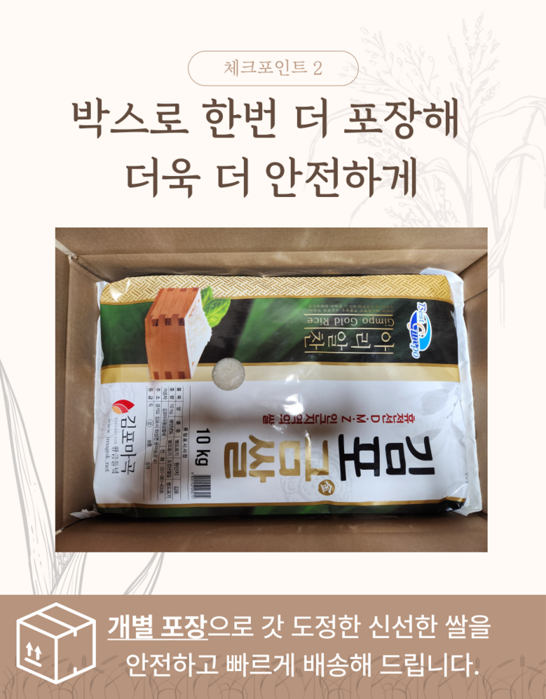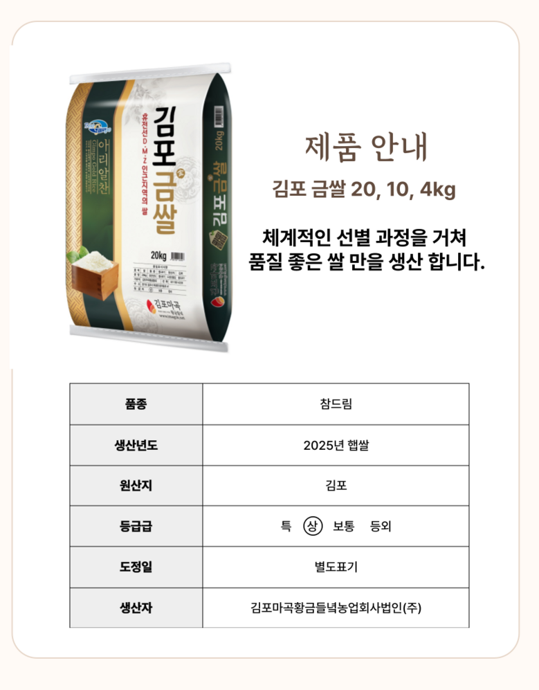 | 품목 또는 명칭 | 김포금쌀 | 포장단위별 내용물의 용량(중량),수량,크기 | 상품 상세페이지 참조 |