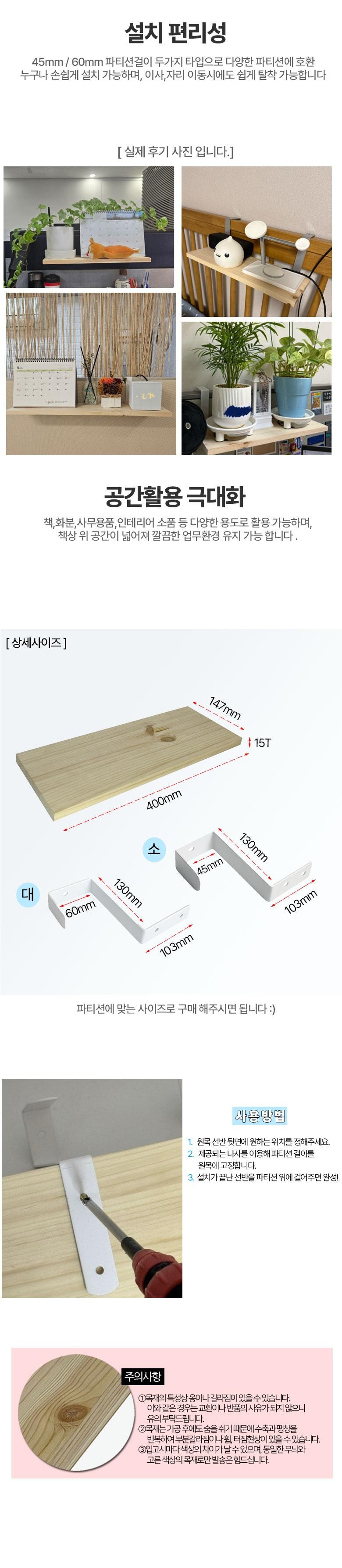 사무실 원목 파티션선반 400*147 파티션걸이 화이트 1세트
