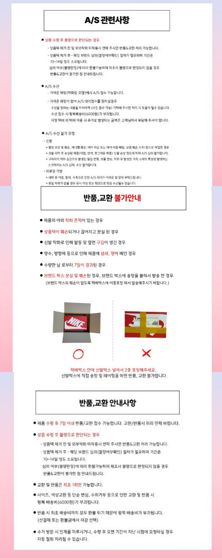 - ㆍ모니터 해상도의 차이로 인해 색상이나 이미지가 실제와 달라, 고객이 단순 변심으로 교환/반품을 무료로 요청하는 경우