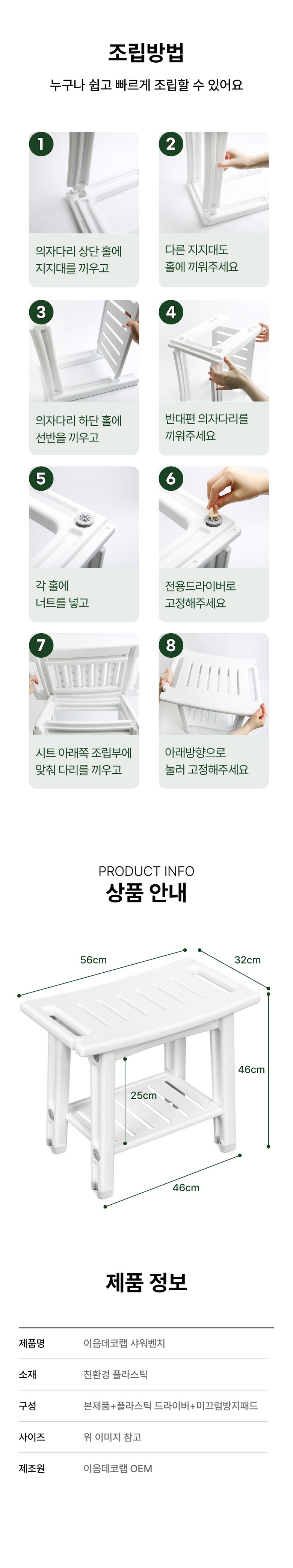 | 품명 및 모델명 | 이음데코랩 샤워벤치 | 인증/허가 사항 | 해당사항없음 |