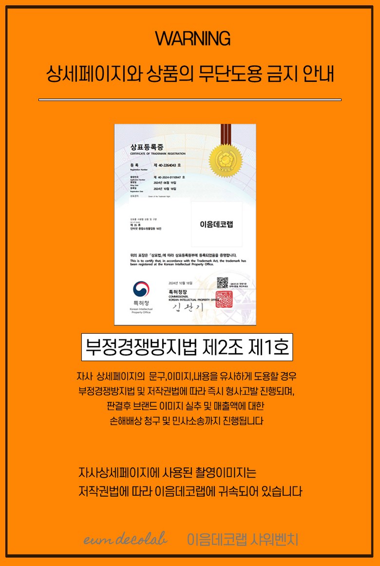 | 소비자상담 관련 전화번호 | 카카오톡 이음데코랩 또는 010-2648-2464 | ||
