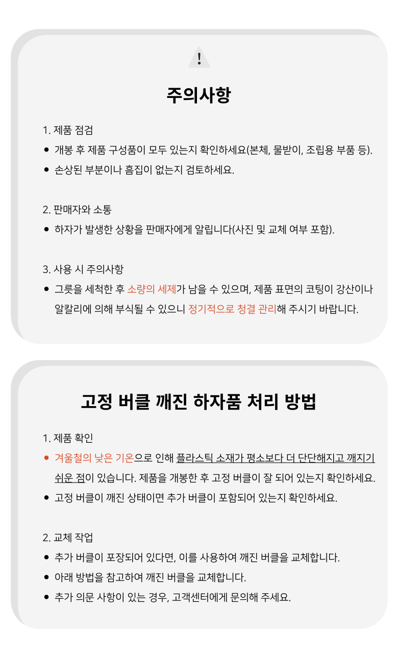 - ㆍ교환/반품에 관한 일반적인 사항은 판매자가 제시사항보다 관계법령이 우선합니다.