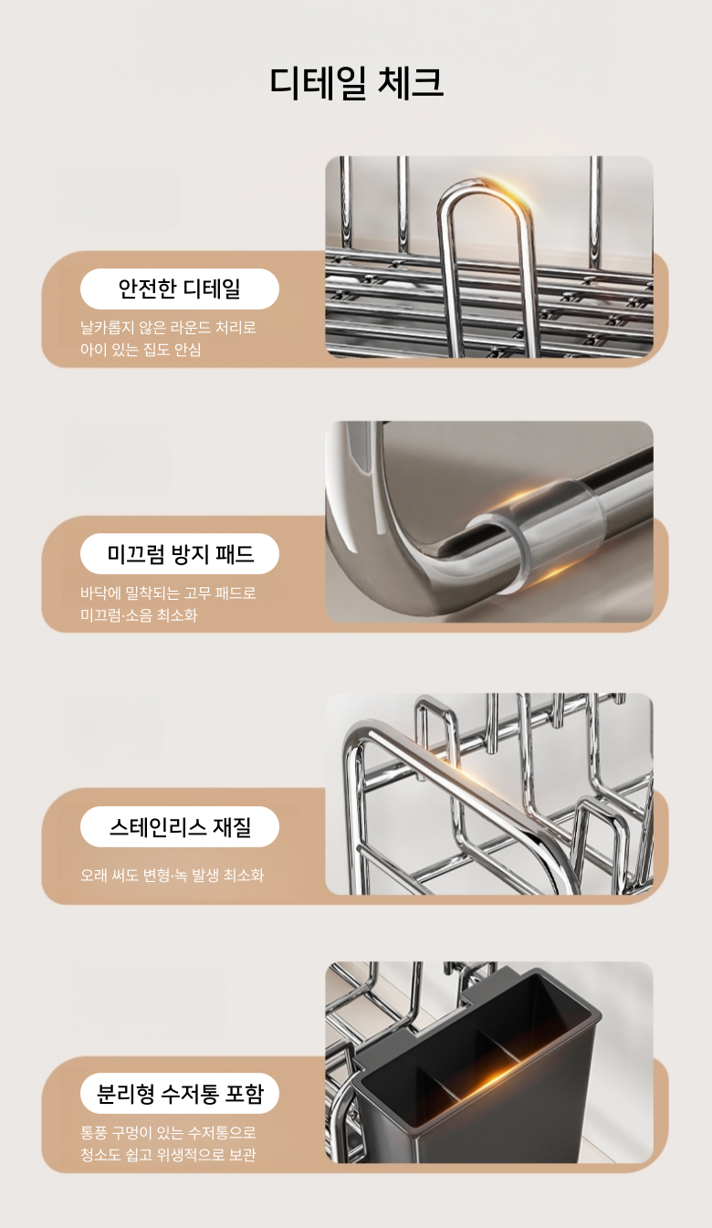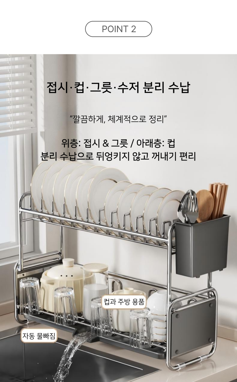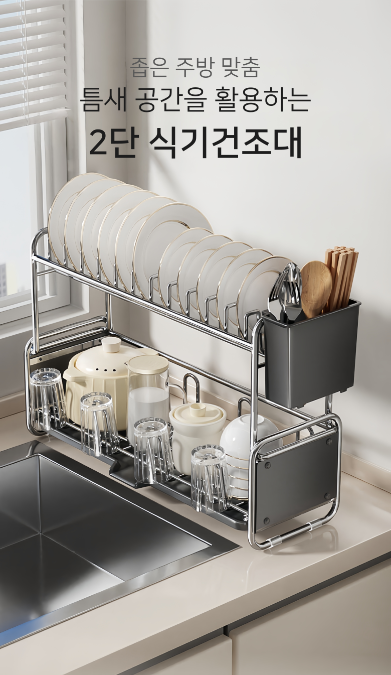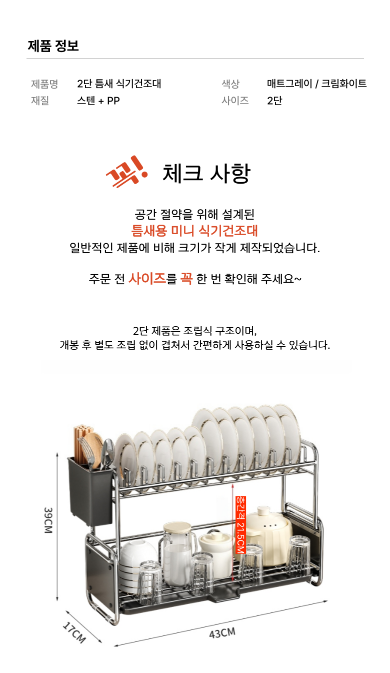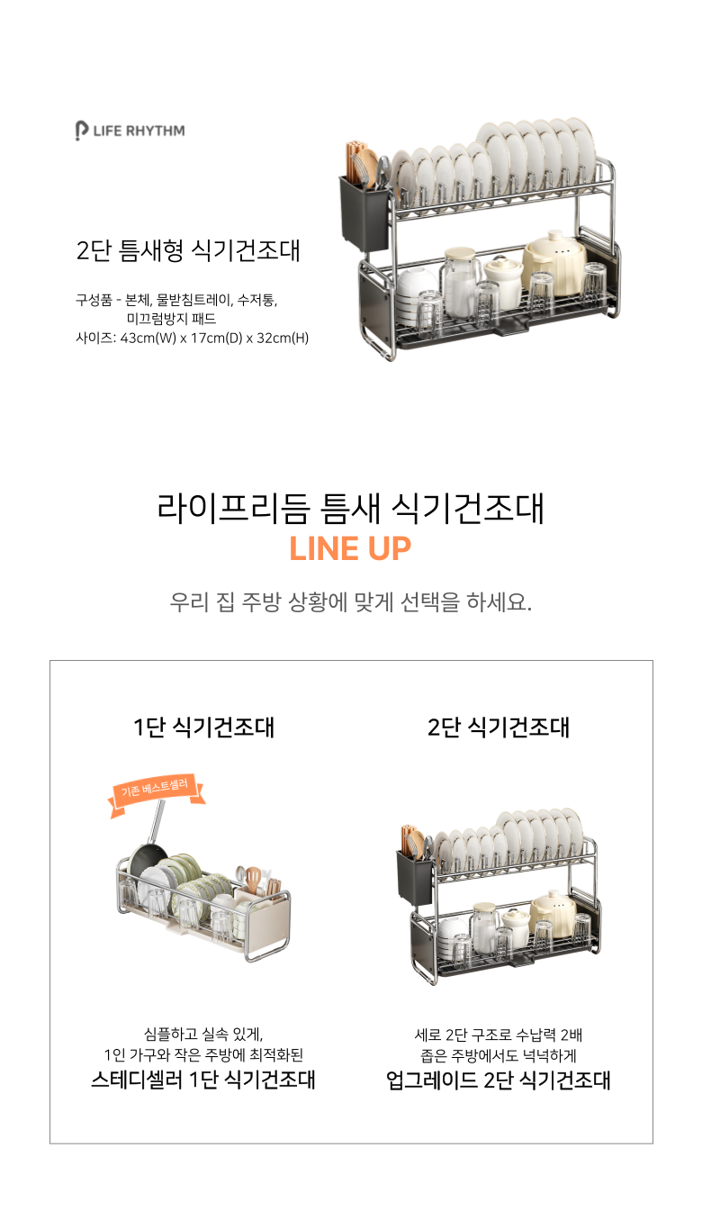 | 품명 및 모델명 | 라이프리듬 2단 틈새용 식기건조대 | 재질 | 스텐 + pp |