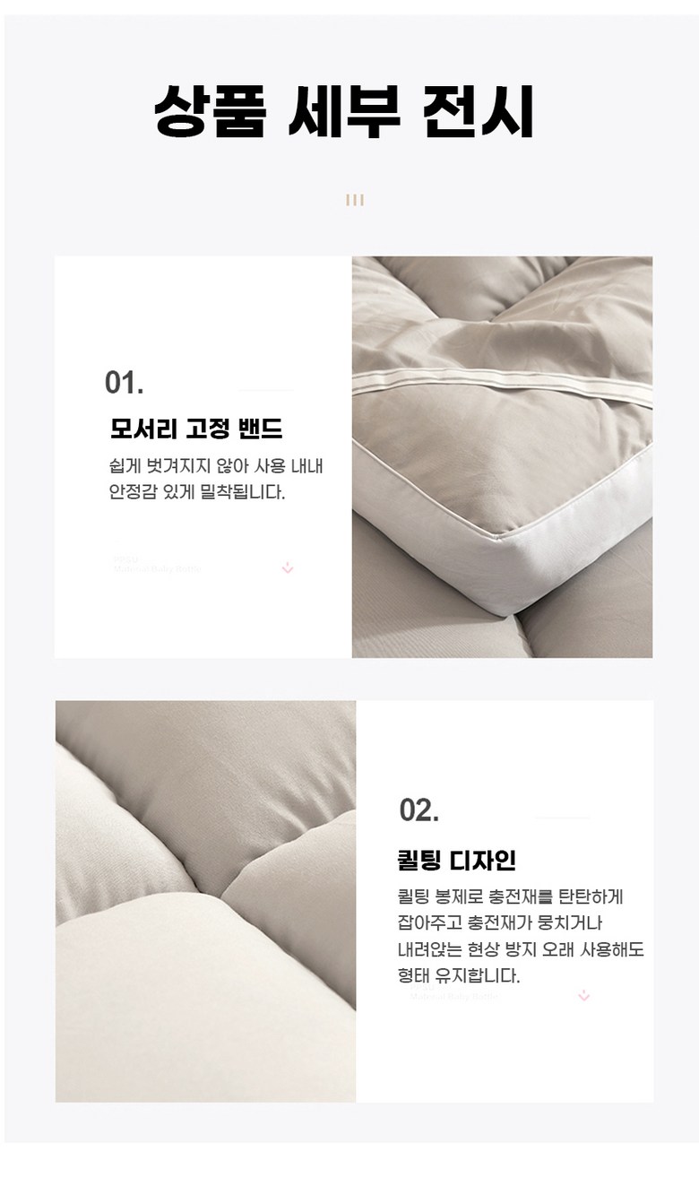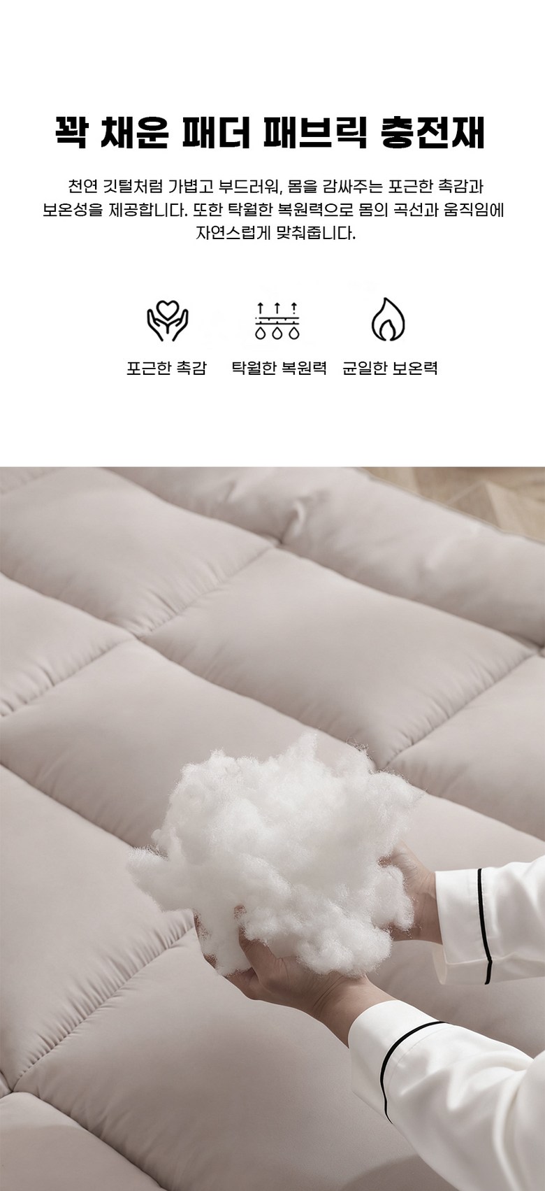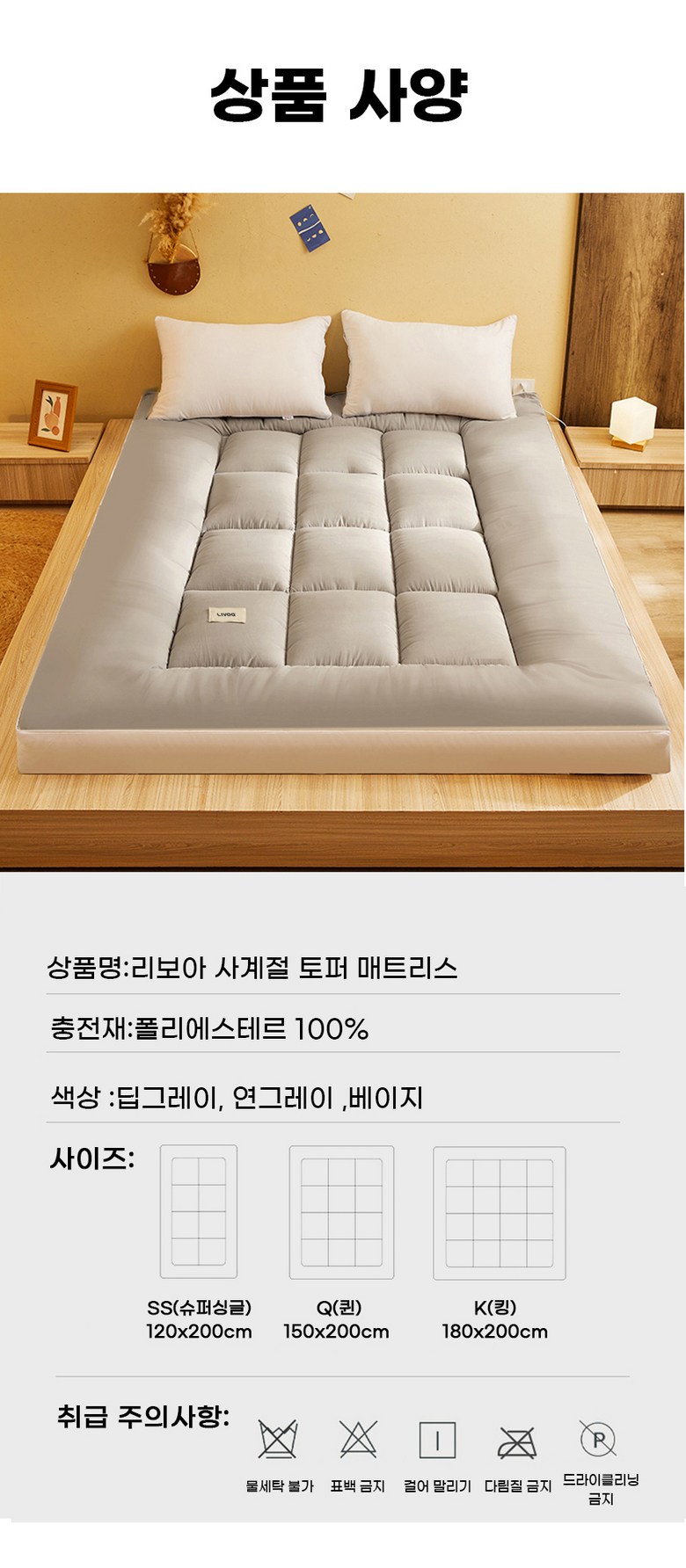 | 치수 | 120x200cm, 150x200cm, 180x200cm | 제품구성 | 토퍼 단품 |