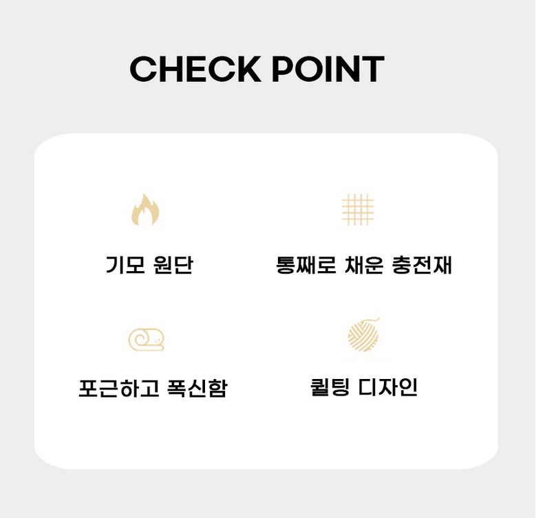 | 제품 소재 | 섬유의 조성 또는 혼용률을 백분율로 표시, 충전재를 사용한 제품은 충전재를 함께 표기 <br>예) 면 50%, 폴리에스터 50% (혼용률 100%가 되도록 기재) | 색상 | 연그레이 |