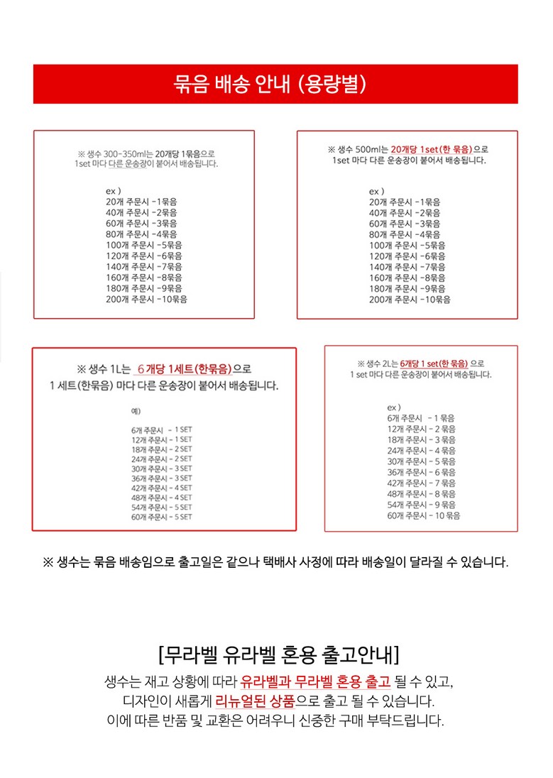 | 배송방법 | 순차배송 | 배송비 | 무료배송 - 도서산간 지역 배송불가 |