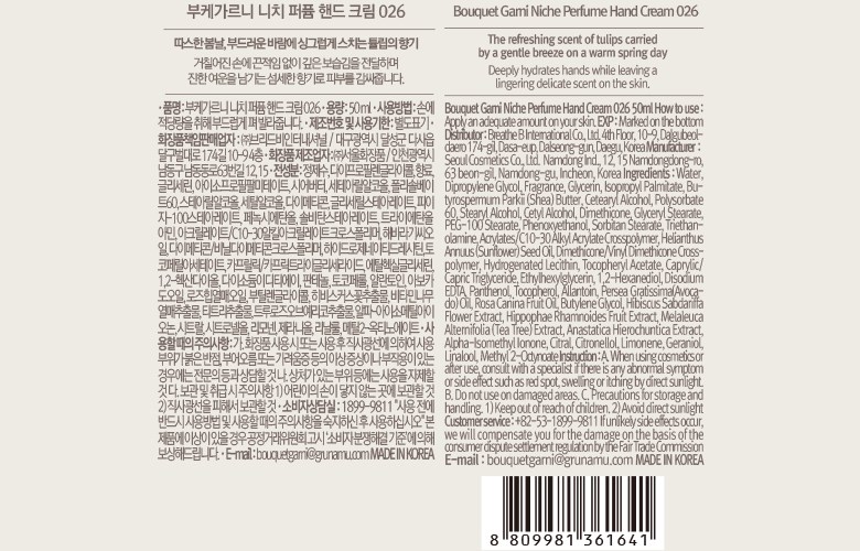 | 화장품제조업자, 화장품책임판매업자 및 맞춤형화장품판매업자 | 컨텐츠 참조 | 제조국 | 컨텐츠 참조 |