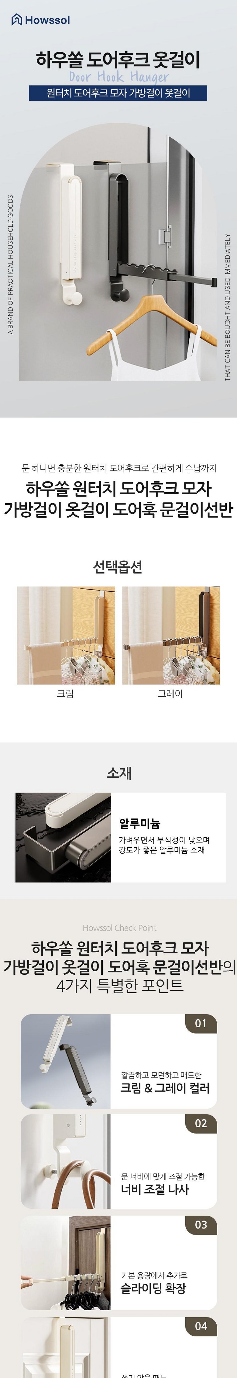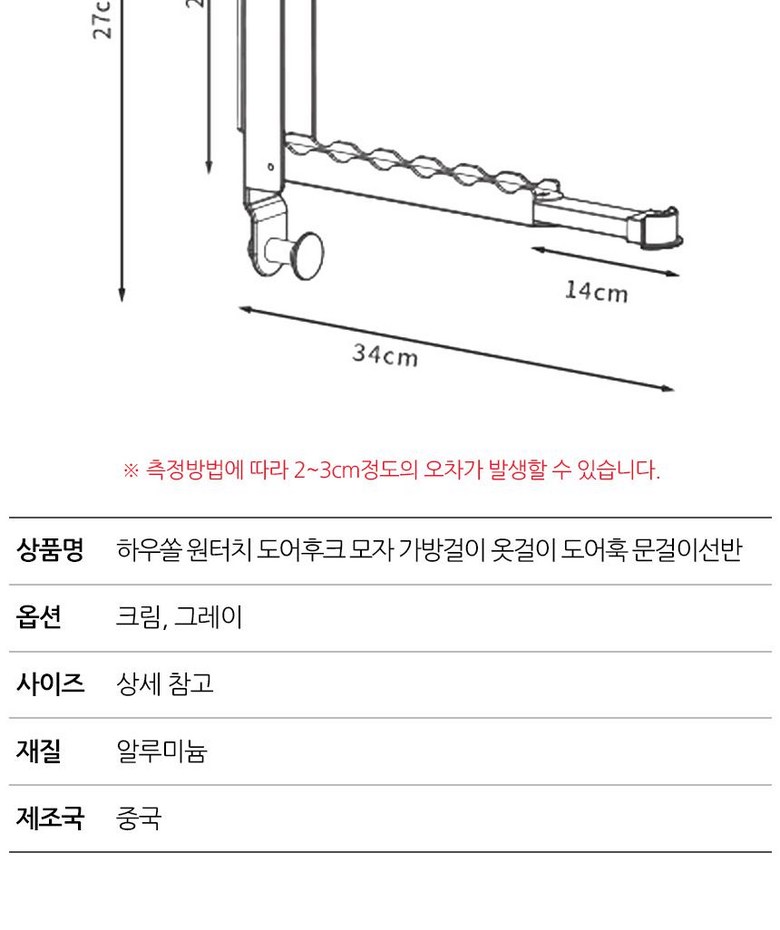 | 품명 및 모델명 | 하우쏠 원터치 도어후크 모자 가방걸이 옷걸이 도어훅 문걸이선반 | 인증/허가 사항 | 해당사항없음 |