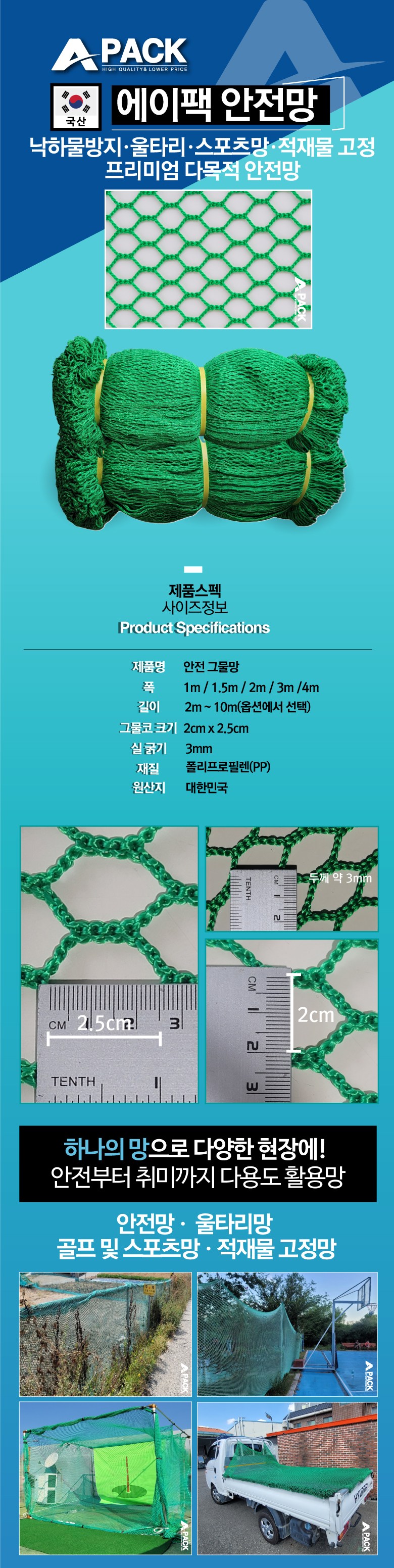 | 품명 및 모델명 | 에이팩 안전망 낙하물 방지망 골프연습 화물차 그물망 | 인증/허가 사항 | 해당사항없음 |
