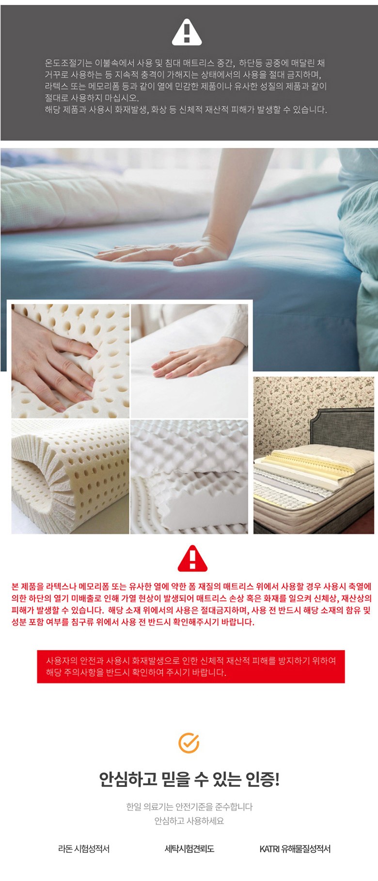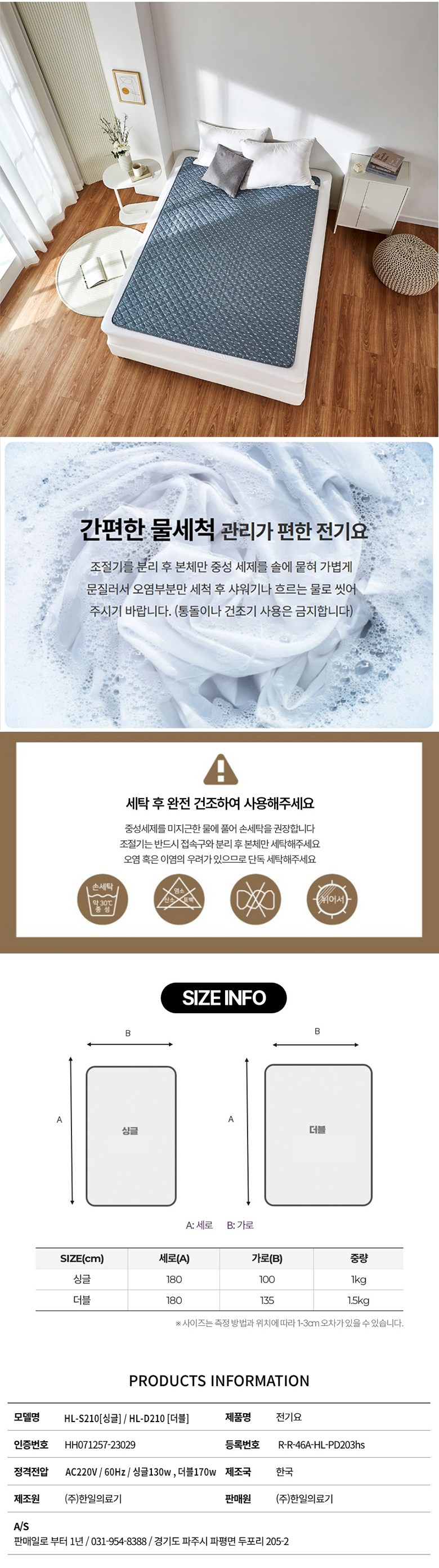 - 전기/온수매트 용도: 침대용