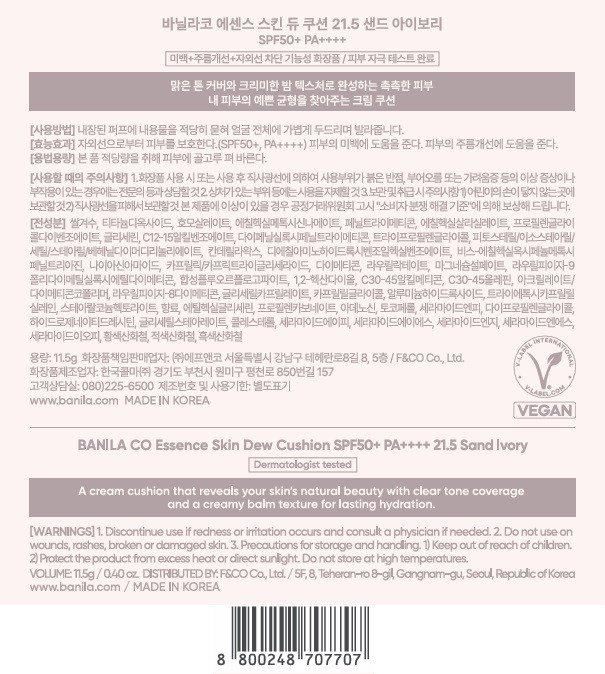| 화장품제조업자, 화장품책임판매업자 및 맞춤형화장품판매업자 | 컨텐츠 참조 | 제조국 | 대한민국 |