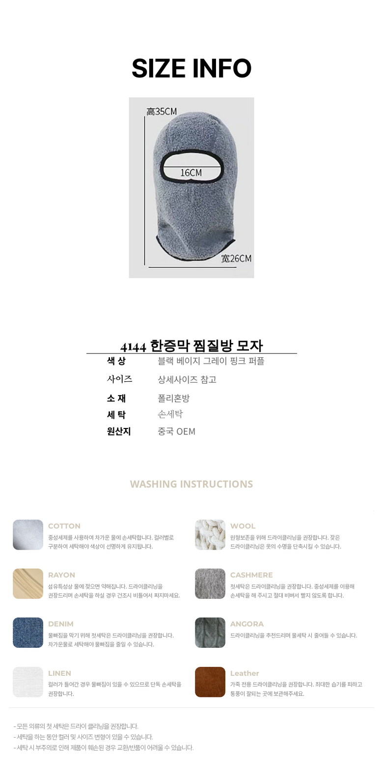 T4144 한증막 찜질방 모자 1+1 두건 사우나 불가마 얼굴가리개