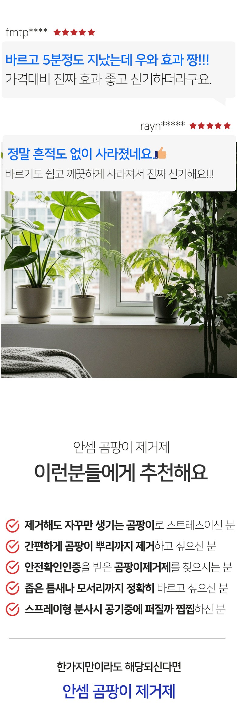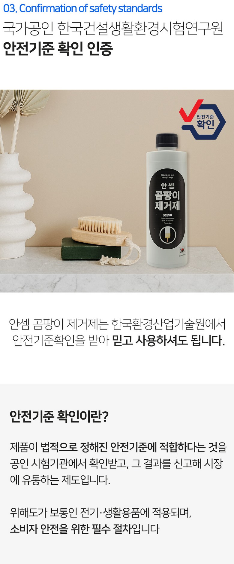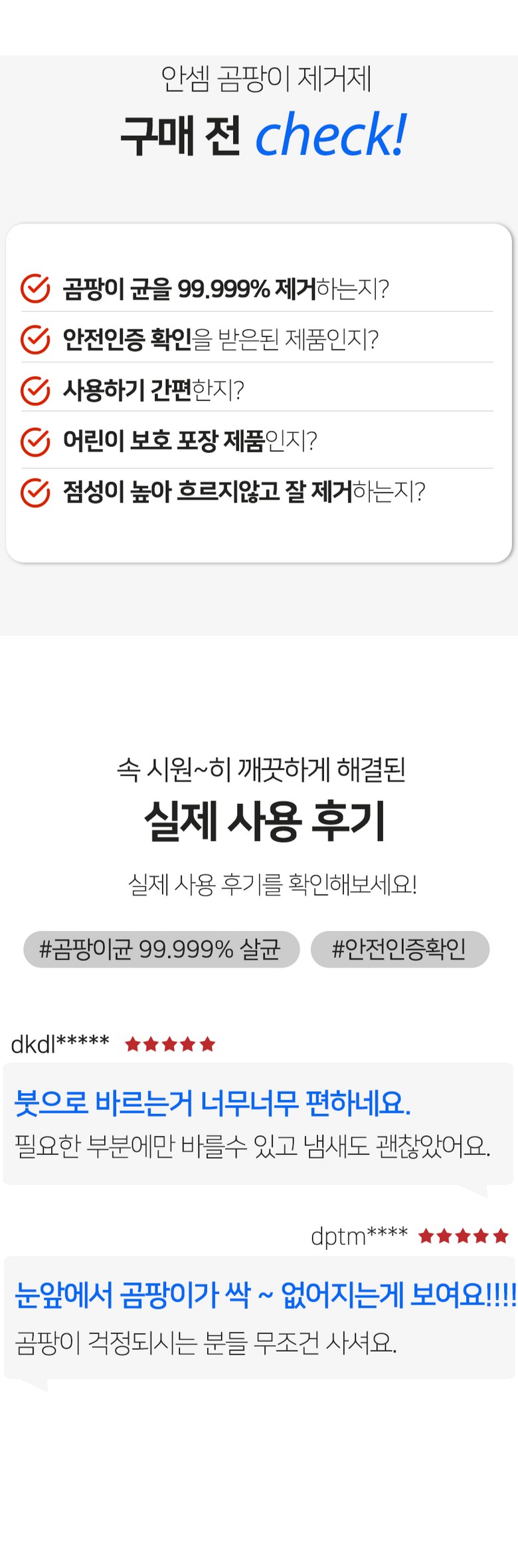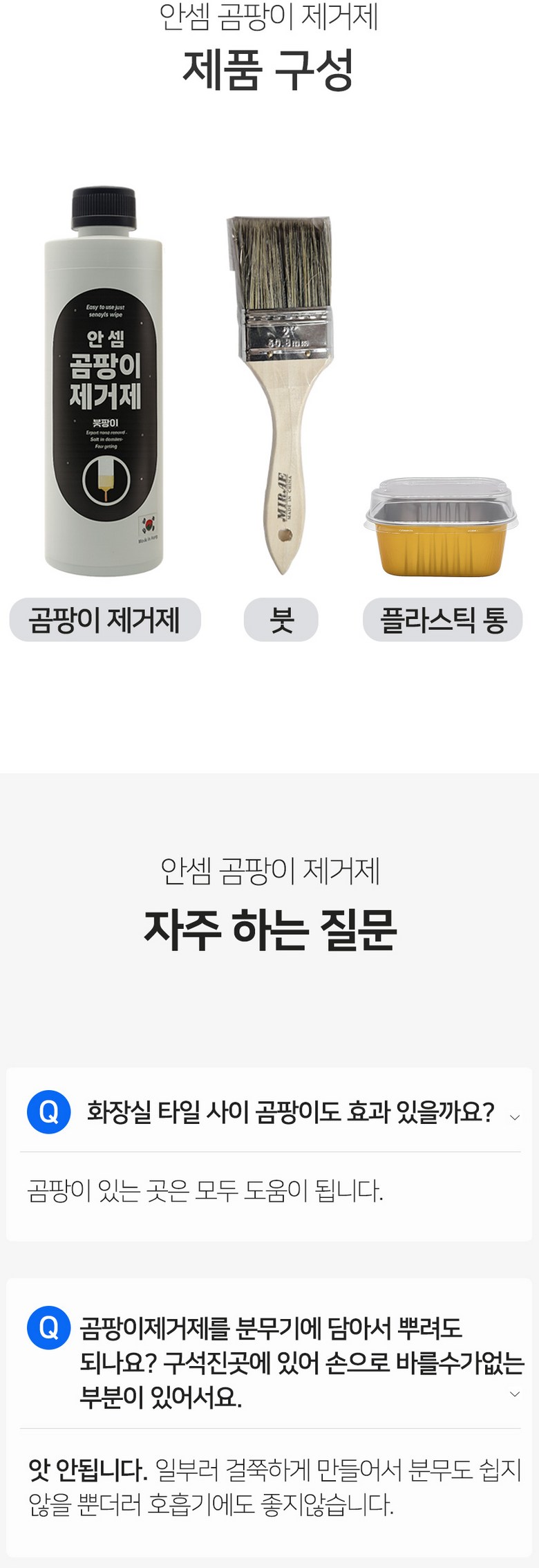 | 품목 및 제품명 | 안셈 곰팡이 제거제 붓팡이 | 용도(표백제의 경우 계열을 함께표시) 및 제형 | 세정제 - 일반용 (기타표면(벽지,실리콘,베란다)일반용(가구용)(건물바닥용)(변기용)(욕실용)살균제-일반용(곰팡이제거용),(일반물체용) |