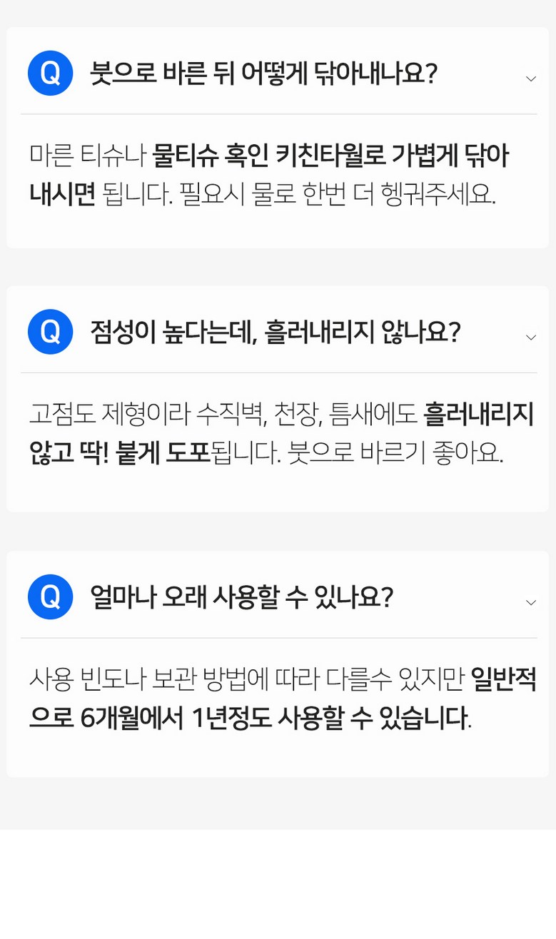 - 가격, 판매자, 교환/환불 및 배송 등 해당 상품 자체와 관련 없는 문의는 고객센터 내 1:1 문의하기를 이용해주세요.