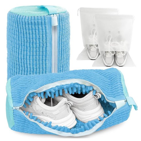 신발 세탁기 가방 및 건조기용 세탁 가능한 운동화 세척 테니스화용 잠금 지퍼 포함 마이크로파이버 내부 보관 흰색2개