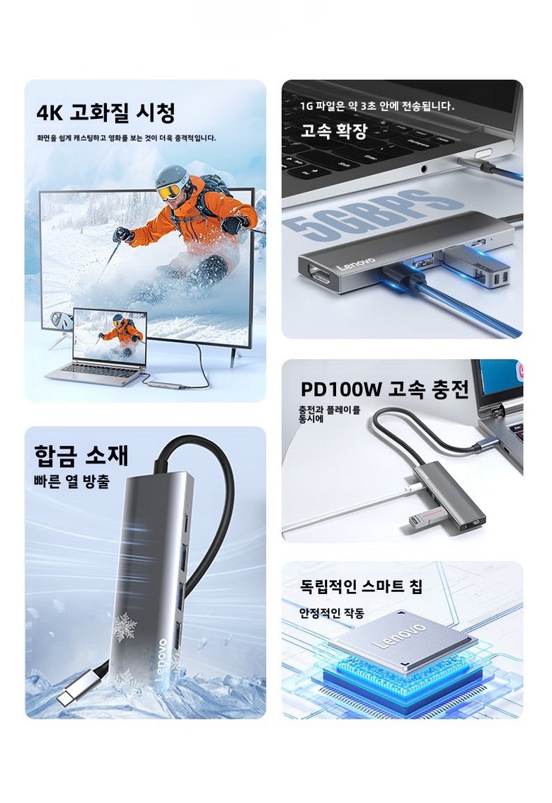 레노버 휴대용 멀티 도크 Type-C USB 허브 S705