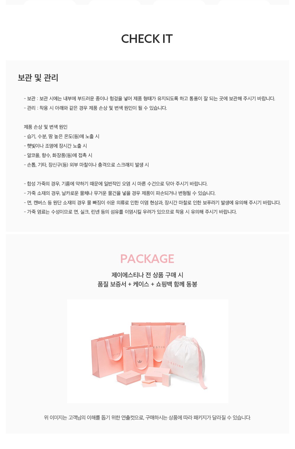 | 제조자(수입자) | J.ESTINA / ㈜제이에스티나 | 제조국 | 중국 |
