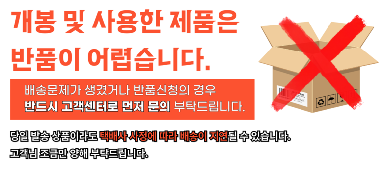 - ㆍ교환/반품에 관한 일반적인 사항은 판매자가 제시사항보다 관계법령이 우선합니다.