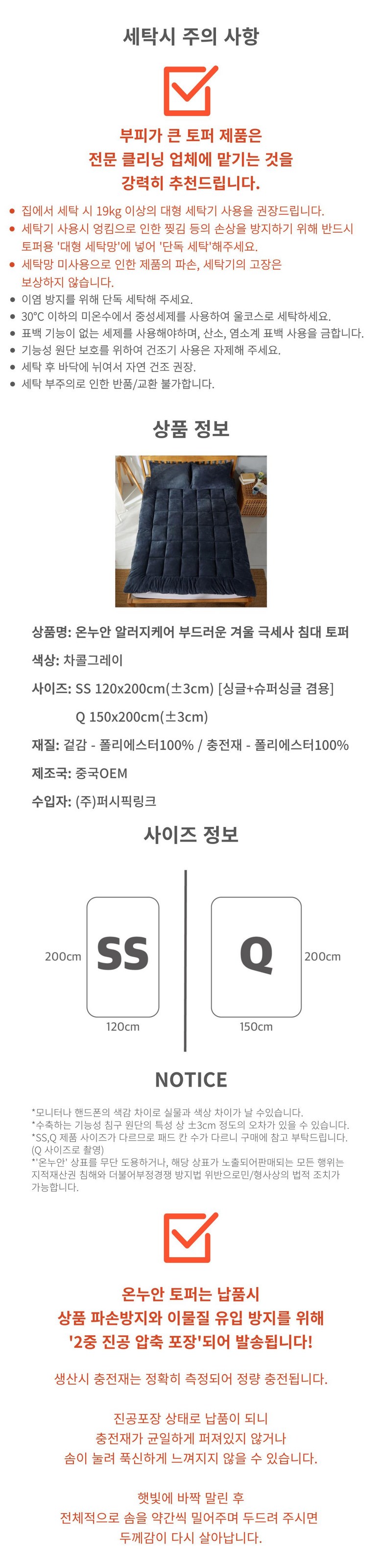 - ㆍ모니터 해상도의 차이로 인해 색상이나 이미지가 실제와 달라, 고객이 단순 변심으로 교환/반품을 무료로 요청하는 경우