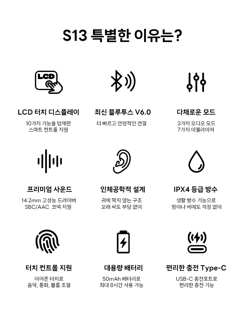 | 품명 및 모델명 | S13 | KC 인증정보 | 상품 상세페이지 참조 |