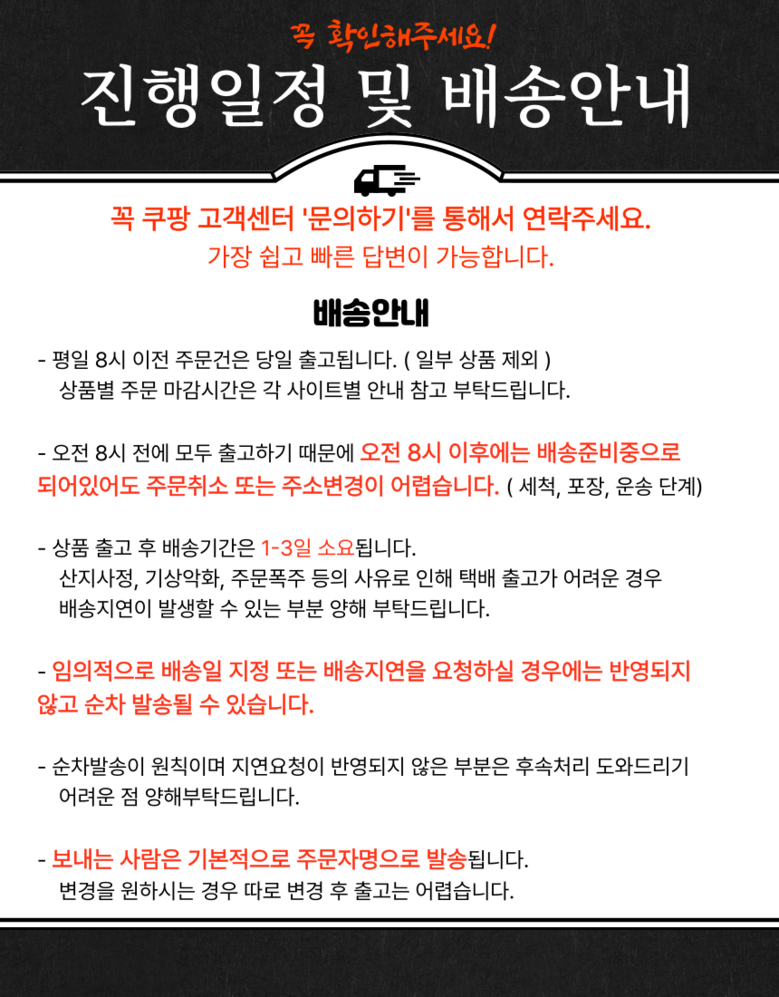 - ㆍ모니터 해상도의 차이로 인해 색상이나 이미지가 실제와 달라, 고객이 단순 변심으로 교환/반품을 무료로 요청하는 경우