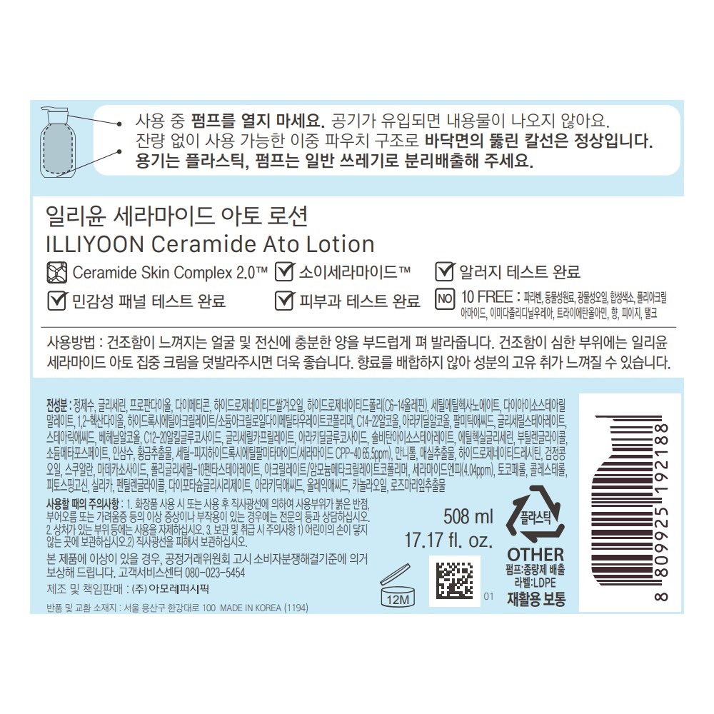 | 용량(중량) | 508ml | 제품 주요 사양 | 모든 피부용 |