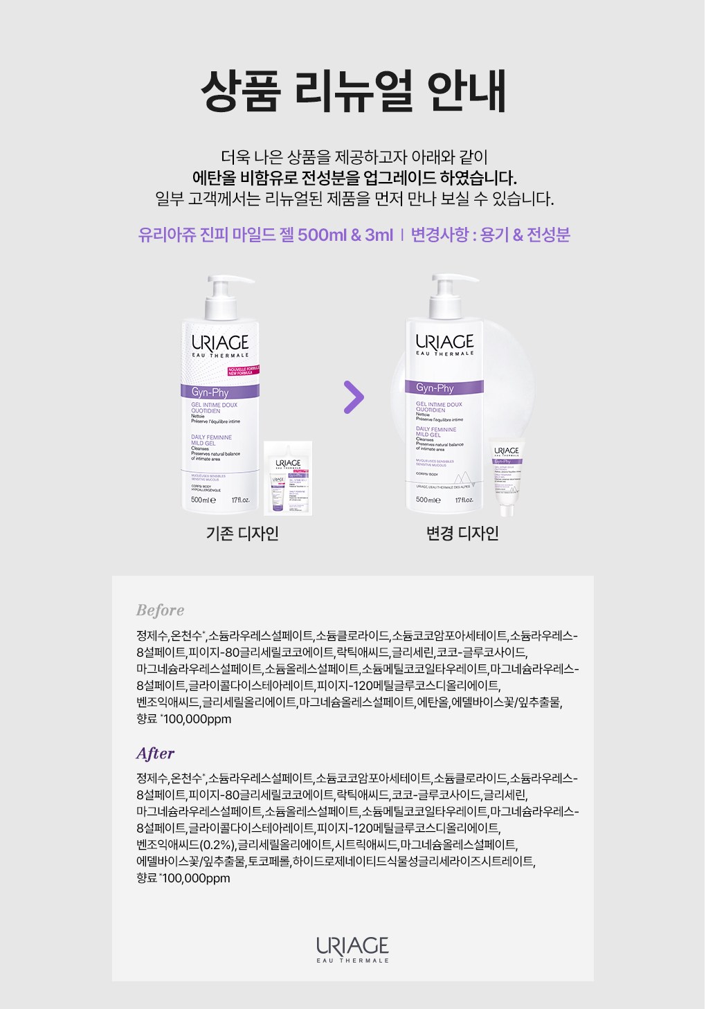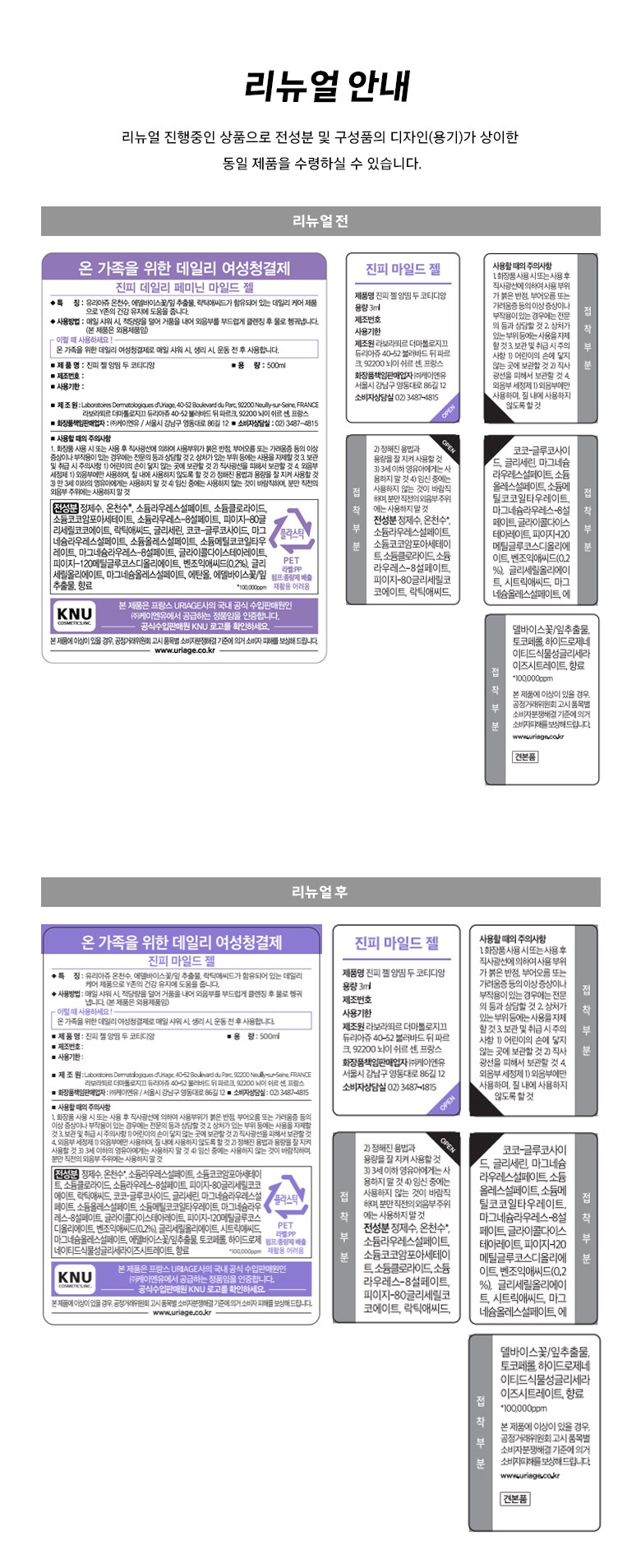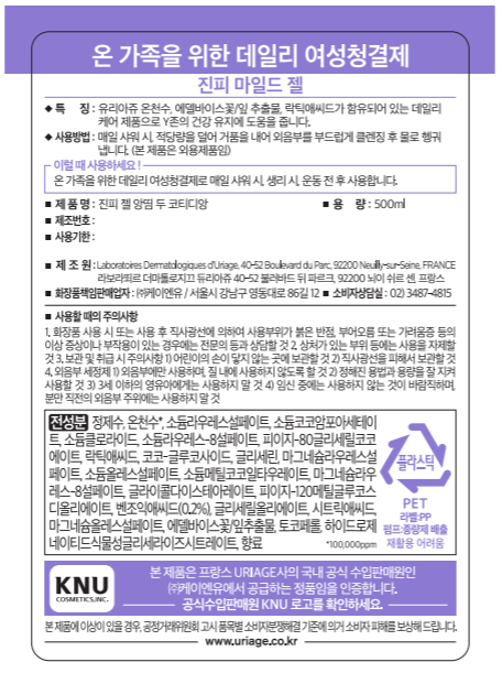 | 화장품제조업자, 화장품책임판매업자 및 맞춤형화장품판매업자 | Laboratoires Dermatologiques d'Uriage/(주)케이엔유 | 제조국 | 프랑스 |