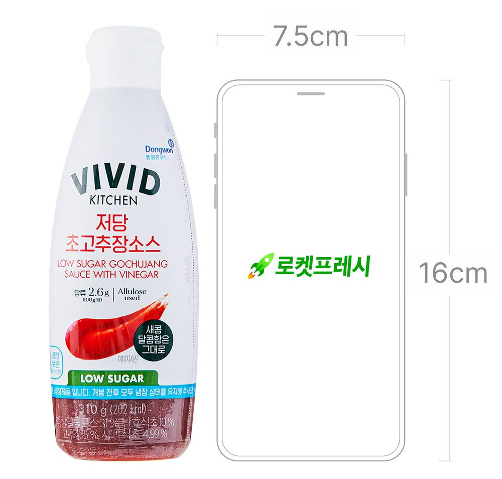 다양한 저당 소스를 선보이는 비비드키친의 초고추장 소스예요. 숙회나 생선회를 먹을 때나 비빔밥 재료로 활용하기 좋아 다양한 요리에 두루두루 쓰이는데요. 그런 초고추장도 이제 저당으로 즐겨보세요. 사과식초, 고추장 등으로 맛을 내 새콤달콤한 풍미는 그대로 담았답니다. 소스로 드셔도 좋고, 오이나 미역무침을 만들 때 활용해도 좋아요.