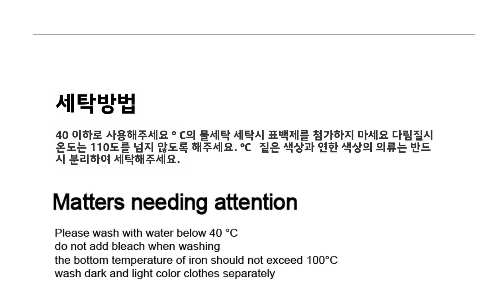| 제조국 | CHINA | 세탁방법 및 취급시 주의사항 | 단독세탁 권장 |