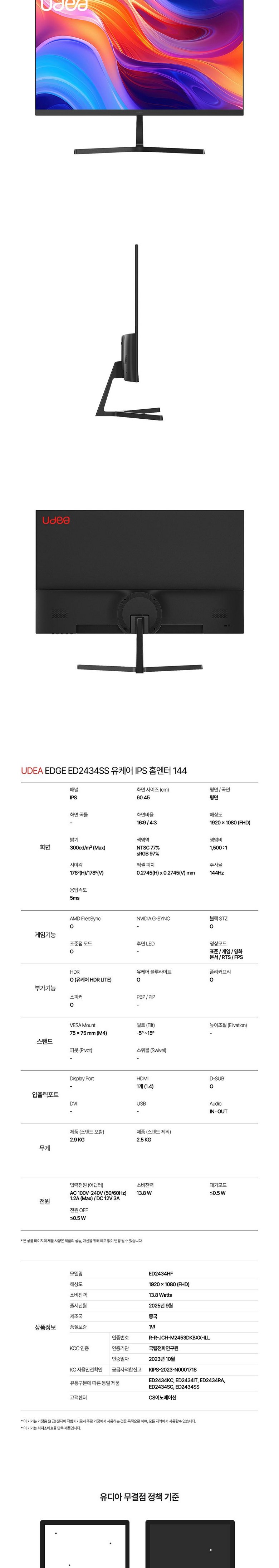 | 정격전압, 소비전력 | 상품 상세페이지 참조 | 에너지소비효율등급 | 상품 상세페이지 참조 |