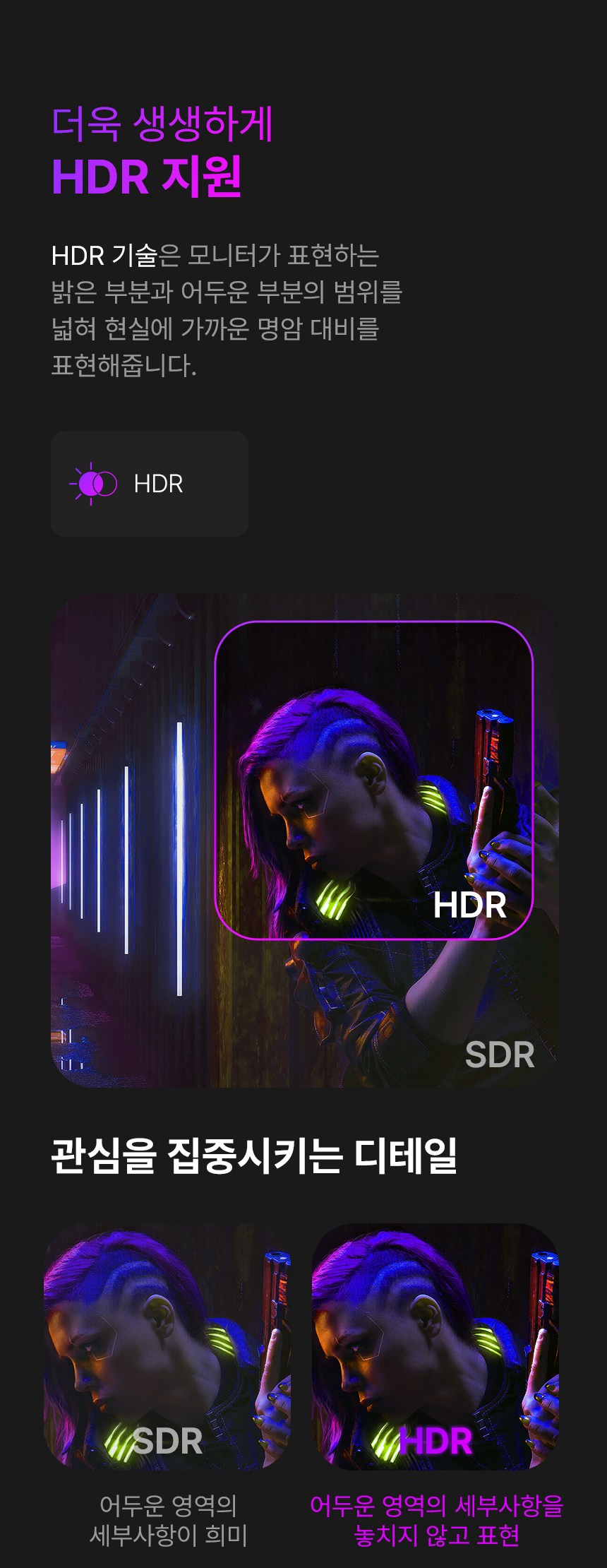 - 응답속도: 1ms(MPRT)