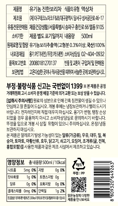 - 유기농/친환경 등: 인증 있음